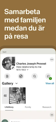 Upptäck de fängslande historierna om din släkt och spåra dina rötter med Ancestry-appen. Denna innovativa plattform förvandlar släktforskning till en enkel och givande upplevelse. Skapa ditt personliga släktträd med bara några få tryckningar, lägg till nya släktingar, ladda upp ovärderliga foton och bevara unika berättelser som definierar din härkomst. Att dela dessa insikter med nära och kära har aldrig varit smidigare, vilket gör det enkelt att samarbeta och bygga en rikare bild av ert gemensamma förflutna.
