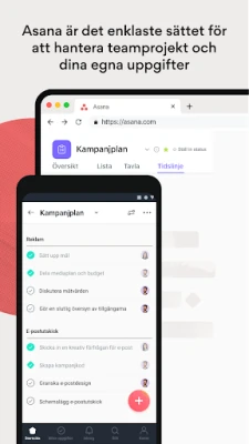 Asana förenklar hanteringen av teamprojekt och personliga uppgifter. Se till att teamet alltid vet vad som ska göras, när och hur. Asana organiserar arbetet för ökad tydlighet och effektivitet i alla projekt.