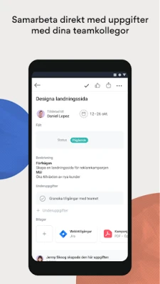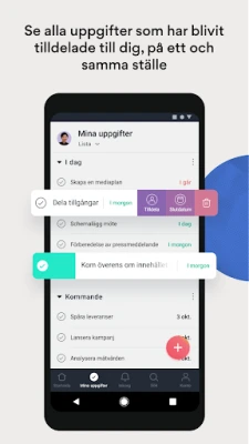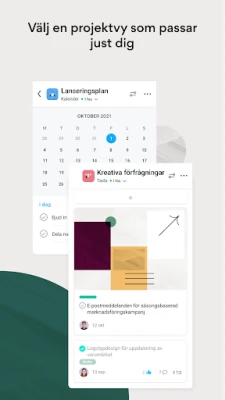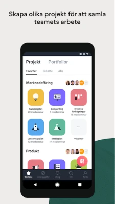 Revolutionera hur ditt team driver framgång, oavsett om ni arbetar på kontoret, hemifrån eller på resande fot. Med Asana har du alltid tillgång till de verktyg som behövs för att samla, organisera och hantera ditt teams alla projekt. Bryt ner komplexa mål till hanterbara uppgifter, tilldela tydliga ägare och sätt effektiva tidsramar. Välj den vy som passar just er bäst – från detaljerade listor, dynamiska Kanban-tavlor till överskådliga kalendrar. Förbättra din egen produktivitet med Mina uppgifter, en central plats för alla dina tilldelade åtaganden, där du enkelt prioriterar med drag-och-släpp-funktioner och anpassade avsnitt.