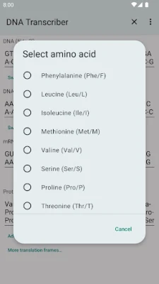 För varje student inom molekylärbiologi, genetik eller biokemi är förståelsen och översättningen av genetiska koder en grundläggande men ofta tidskrävande uppgift. Att manuellt tyda DNA och RNA till aminosyresekvenser kan vara fyllt av utmaningar och misstag. Här presenteras ett smart och intuitivt verktyg designat för att automatiskt hantera just detta: den komplexa sex-ramars proteintranslationen. Med denna applikation omvandlar du snabbt och exakt DNA- eller RNA-sekvenser till upp till sex möjliga aminosyresekvenser, vilket frigör värdefull tid och säkerställer precision i dina studier.