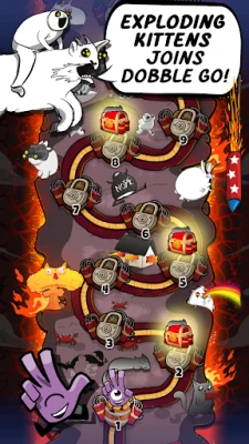 Skärp dina sinnen och utmana din reaktionsförmåga med DOBBLE GO!, den blixtsnabba mobila versionen av det älskade kortspelet. Förbered dig på en helt ny dimension av kaos med den explosiva Exploding Kittens Zone! Detta unika samarbete förvandlar DOBBLE GO! till en lekplats fylld med vilda överraskningar och katter som... ja, exploderar. Upptäck nya kortlekar med ikoniska symboler, möt legendariska Bossar från Exploding Kittens-världen och lås upp exklusiva anpassningsalternativ. Det är den mest galna och uppsluppna uppdateringen hittills, garanterat att få dig att skratta högt medan du matchar symboler i en febril jakt.