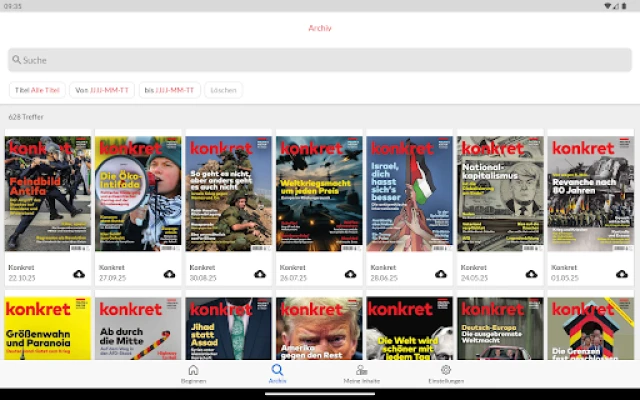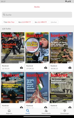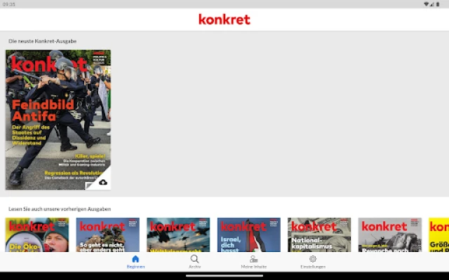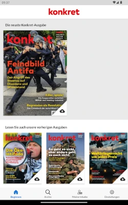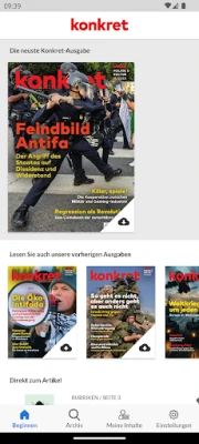 Utforska konkret, Tysklands äldsta vänsterpublikation, grundad 1974. konkret är känd för sitt konsekventa förkastande av krig, vidskepelse, kapitalism, nazism, fascism, rasism och antisemitism. En tidskrift med starka principer.