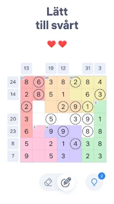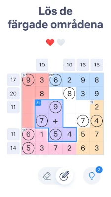 Njut av den rena och intuitiva designen som låter dig fokusera helt på pusslen. Skifta enkelt mellan att markera och radera siffror, och om du skulle fastna i en särskilt klurig situation finns hjälpsamma ledtrådar alltid nära till hands. Med Number Sums får du lyxen att lösa dessa kluriga uppgifter i din egen takt, helt utan tidspress. Låt Number Sums från Easybrain bli din nya favorit för en avkopplande men samtidigt intellektuellt givande stund, när som helst, var som helst.
