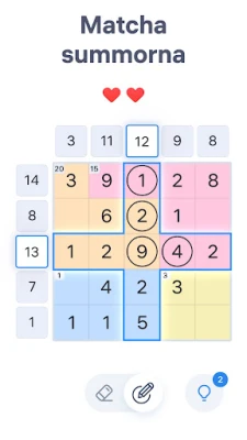 Number Sums är ett utmanande nummerspel som tränar din mentala räkning. Lös siffergåtor genom att matcha summan i rader, kolumner och färgade områden med givna ledtrådar. Perfekt för att testa dina matematikkunskaper och logik med Number Sums.