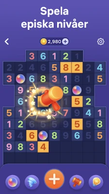 Äventyret tar inte slut när du rensar spelplanen; snarare tvärtom. Varje seger i Number Tiles belönar dig generöst med mynt, din valuta för framgång. Dessa mynt kan du investera i kraftfulla verktyg och hjälpmedel som förvandlar även de svåraste pusslen till njutbara utmaningar. Föreställ dig att kunna krossa en envis ruta med Hammaren, blanda om hela brädet med en Tornado, eller få nya matchningsmöjligheter med regnbågsbubblor. Dessa strategiska hjälpmedel, tillsammans med ledtrådar, är dina nycklar till att fortsätta den spännande resan och övervinna varje nivå som Number Tiles presenterar.
