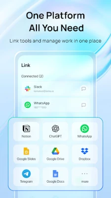 Tanka går långt bortom att bara leverera text. När en avsikt tydligt framgår, dirigerar agenterna automatiskt uppgifter till rätt person, formulerar uppföljningsmejl och ser till att era system uppdateras i realtid. Ett produktbeslut i en chatt kan till exempel snabbt omvandlas till en specifikation i Drive och en sprint i din kalender. Dessutom erbjuder Tanka en samlad översikt över din arbetsdag; se dina Google- och Outlook-kalendrar tillsammans, hantera olästa meddelanden från e-post, Slack och WhatsApp i en enda vy, och svara med Smart Reply som talar med din röst och i rätt kontext. Behöver du hitta något specifikt? Sök i din startups "hjärna" efter meddelanden, dokument och mejl baserat på mening, inte bara nyckelord, och få fram exakta citat eller data med källhänvisningar. Tanka stödjer även er resa mot att säkra finansiering genom att generera omfattande affärsplaner och investerarvänliga presentationsmaterial baserade på ert fullständiga sammanhang, skräddarsydda för grundare, entreprenörer och små startup-team som vill accelerera sin tillväxt utan att öka personalstyrkan. Självklart hanteras din data med högsta säkerhet, krypterad och skyddad med branschledande standarder.