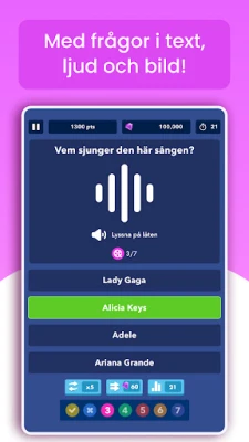 Är du en riktig allvetare? Testa dina kunskaper och utmana ditt sinne med Trivial Svenska, den ultimata frågesportsapplikationen för dig som älskar att lära dig nya saker och bevisa din intellektuella skärpa. Dyk ner i en värld av spännande frågor där snabbhet och precision belönas. Välj ditt favoritområde, svara korrekt och se din poäng klättra ju fler rätta svar du levererar i följd. Förbered dig på att tänka snabbt – varje sekund räknas för att dominera topplistorna!